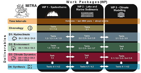 Under the MITRA project, a team of scientists based in Switzerland and France will develop a detailed network of paleoclimate reconstructions from speleothems, lake/wetland and marine sediments sampled; along a ~2000 km-long transect stretching from Eastern Turkey to the Persian Gulf, and covering the past ~11,500 years. The purpose of these reconstructions will be to document variations in regional climate and environmental conditions in unprecedented detail, which will be subsequently used to test and validate state-of-the-art regional climate model simulations.